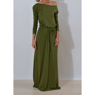 Autumn Women Long Maxi Dress Slash Neck Sashes Winter Dresses Casual Long Sleeve Solid Dress Casual Plus Size GV028